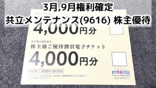 3月優待 共立メンテナンス(9616)から株主優待が到着