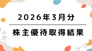 みなさんこんにちは、たちお(@tachio_yutai)です。今回は、2026年3月分の株主優待取得結果についての詳細をまとめました。株主優待の取得結果たちお名義今回は計35銘柄の取得でした。詳細については以下の表にまとめました。取得銘柄数...