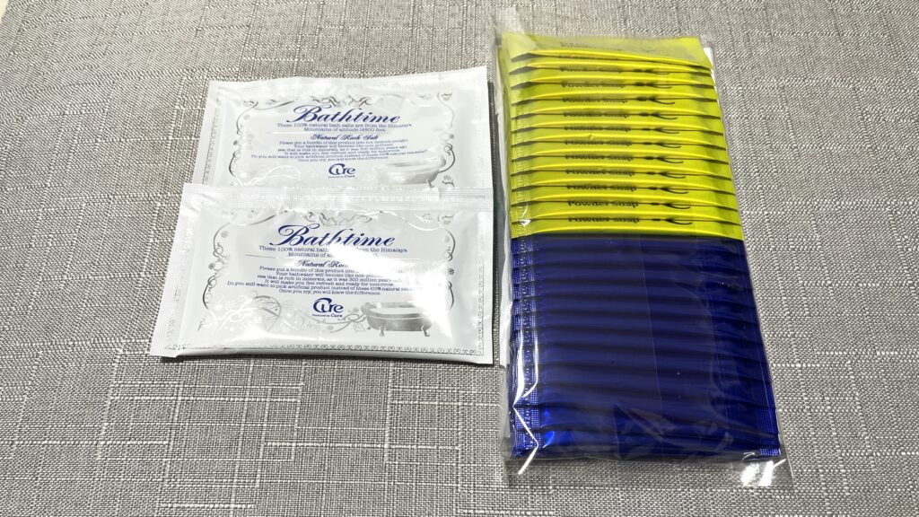 今回も100株取得のため、スペシャルパウダーソープ(洗顔料)と入浴剤がもらえました。
