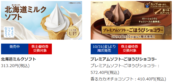株主優待のソフトクリーム無料券はミニストップ公式サイトの「株主優待券交換対象」と記載されている商品で使えます。