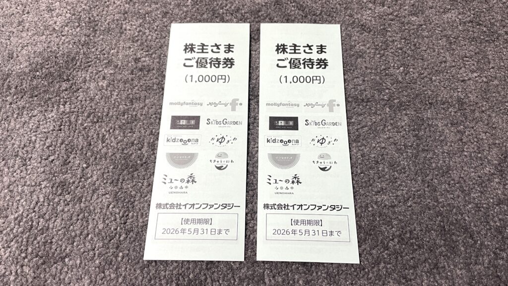 以上がイオンファンタジーの株主優待の紹介でした。