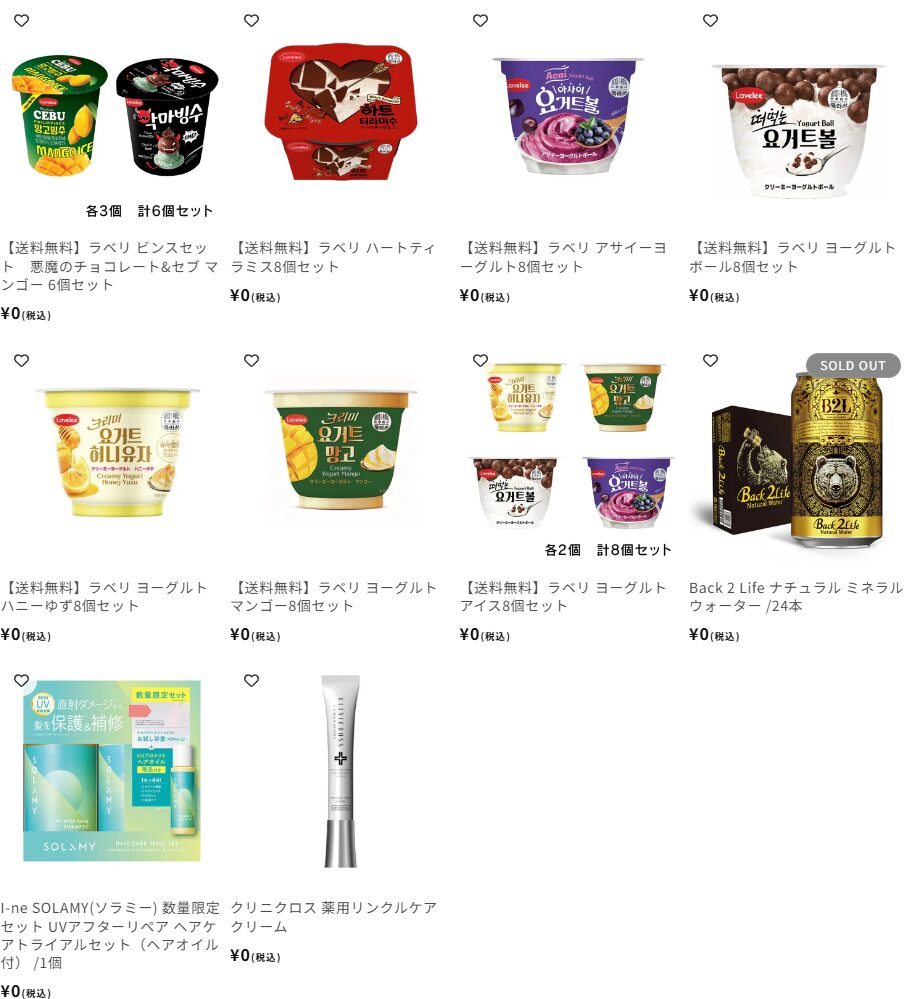 無料プレゼントを期待していましたが、申し込みが開始して2~3時間経過したらほぼ売り切れになってしまい、下記のような商品しか残っていませんでした。。。