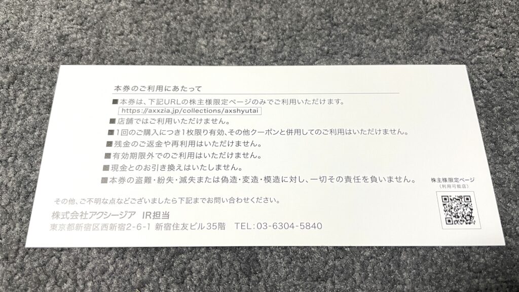株主優待はアクシージア公式オンラインショップで利用できる優待券がもらえます。