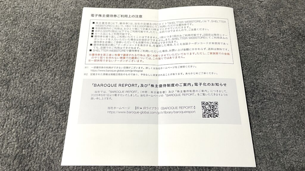 以上がバロックジャパンリミテッドの株主優待の紹介でした。