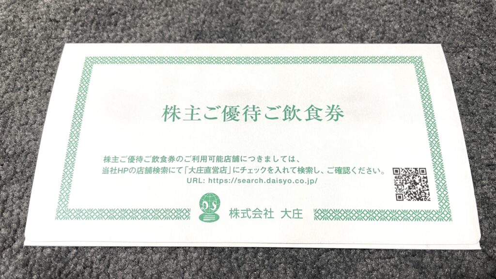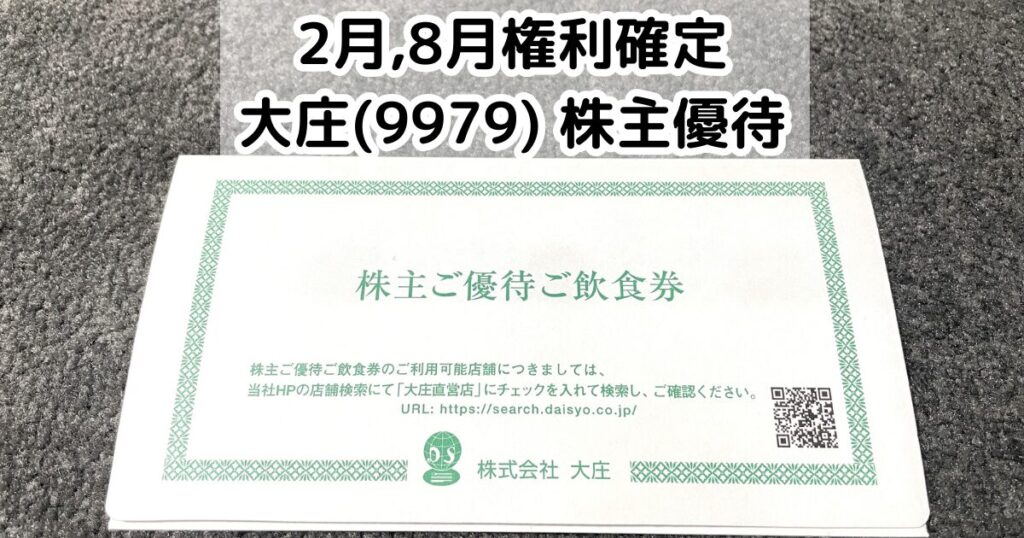今回は大庄(証券コード:9979)の株主優待が到着したので、株主優待の内容について紹介します。