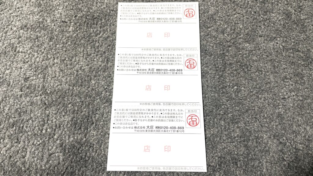以上が大庄の株主優待の紹介でした。