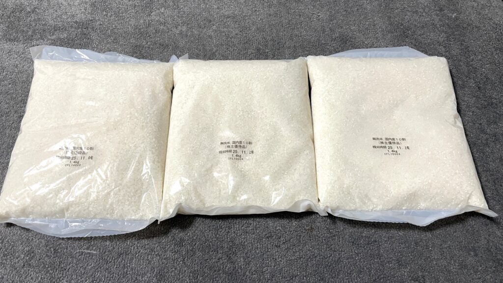 今回はお米1.4kg×3袋の優待品を選択して、食費に貢献することにしました。