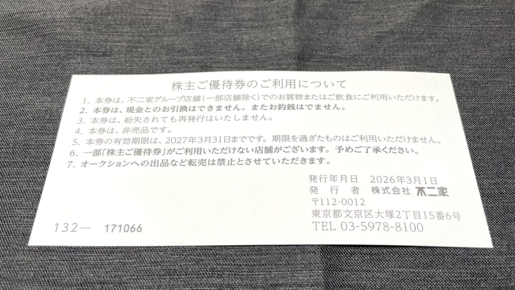 2026年3月5日に12月権利確定分の優待が到着しました。