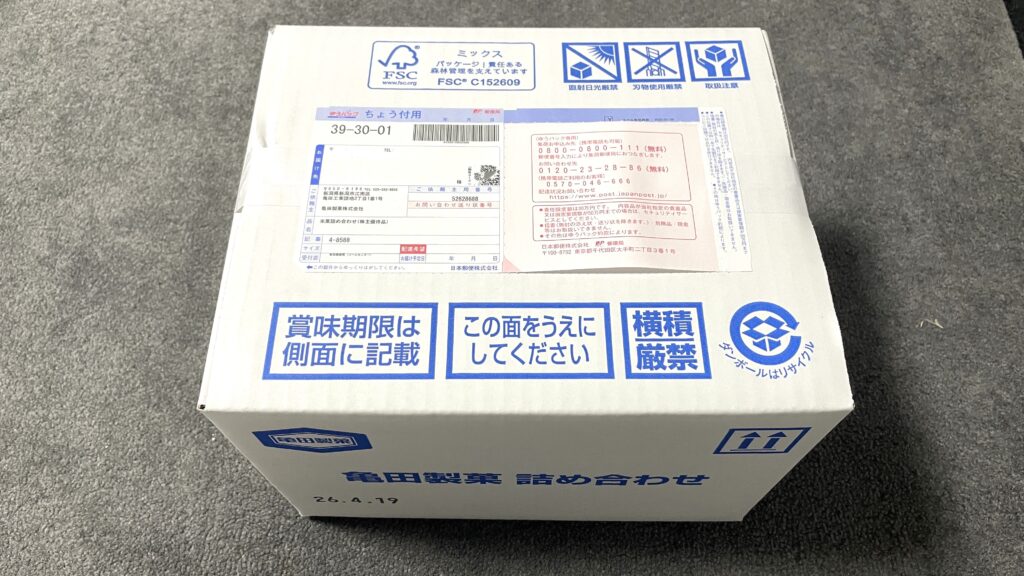 今回は亀田製菓(証券コード:2220)の株主優待が到着したので、株主優待の内容について紹介します。