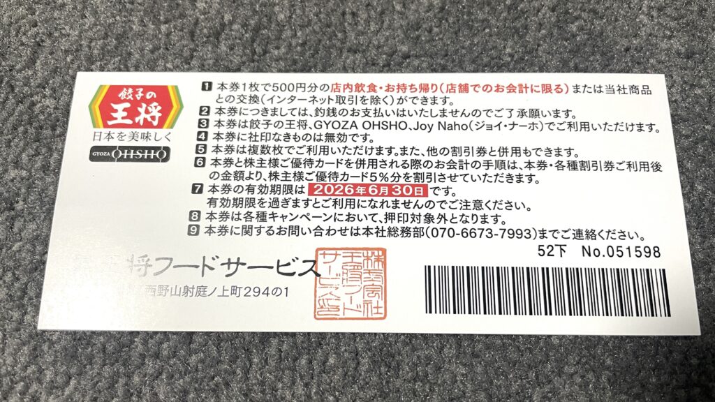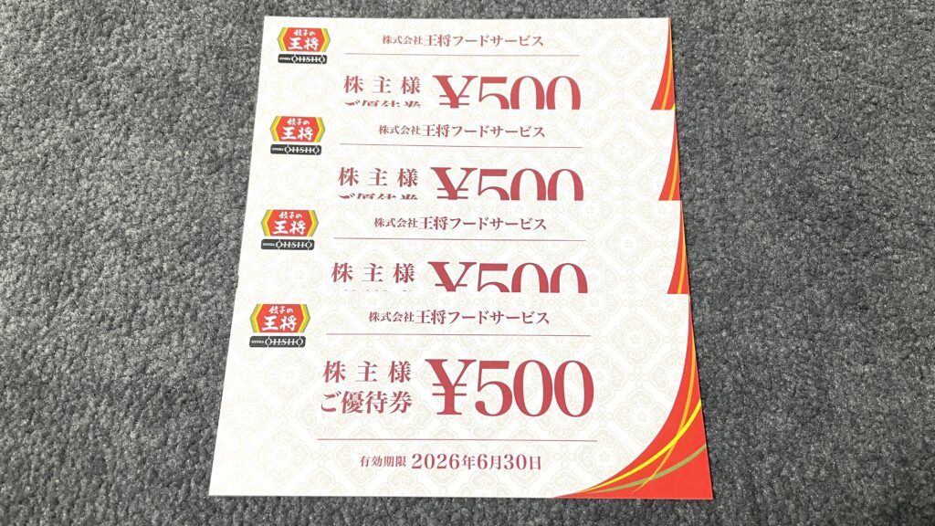 今回は王将フードサービス(証券コード:9936)の株主優待が到着したので、株主優待の内容について紹介します。