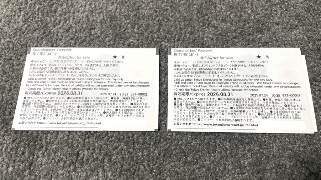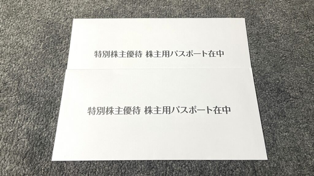 100株を2名義分取得したため、パスポート券が2枚もらえました。有効期限は2026年8月31日までとなっておりました。