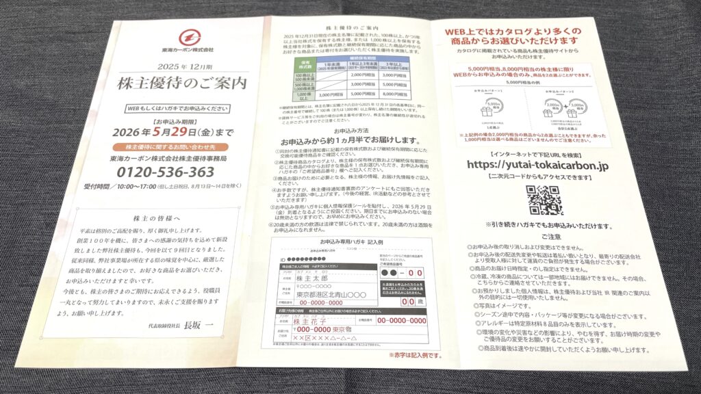 今回は東海カーボン(証券コード:5301)の株主優待が到着したので、株主優待の内容について紹介します。
