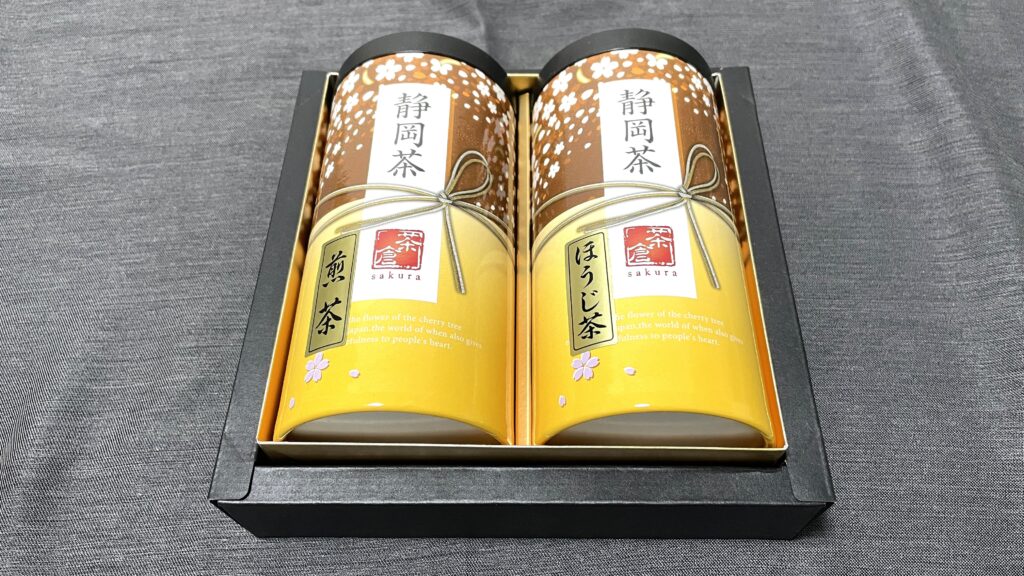 選択した静岡茶セットが2025年4月8日に届きました。煎茶とほうじ茶のセットです。